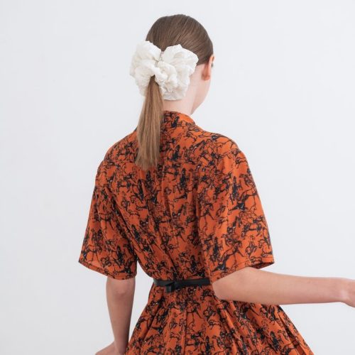 Maison Chou scrunchies are handcrafted in Paris. The chosen fabrics are Italian or French, and are selected for their perfect quality and finishing. Each scrunchie is decorated with a chromed ring signed Maison Chou, engraved in Paris in the oldest factory in the city.