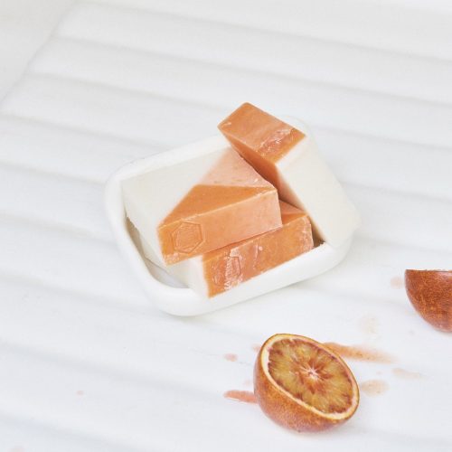 This soap with a powdery fragrance is cold saponified with oils from organic farming, colored with mineral pigments and has no palm oil. The fragrance is anti-allergenic and free of essential oils, making it suitable for pregnant women and children from 3 years old.